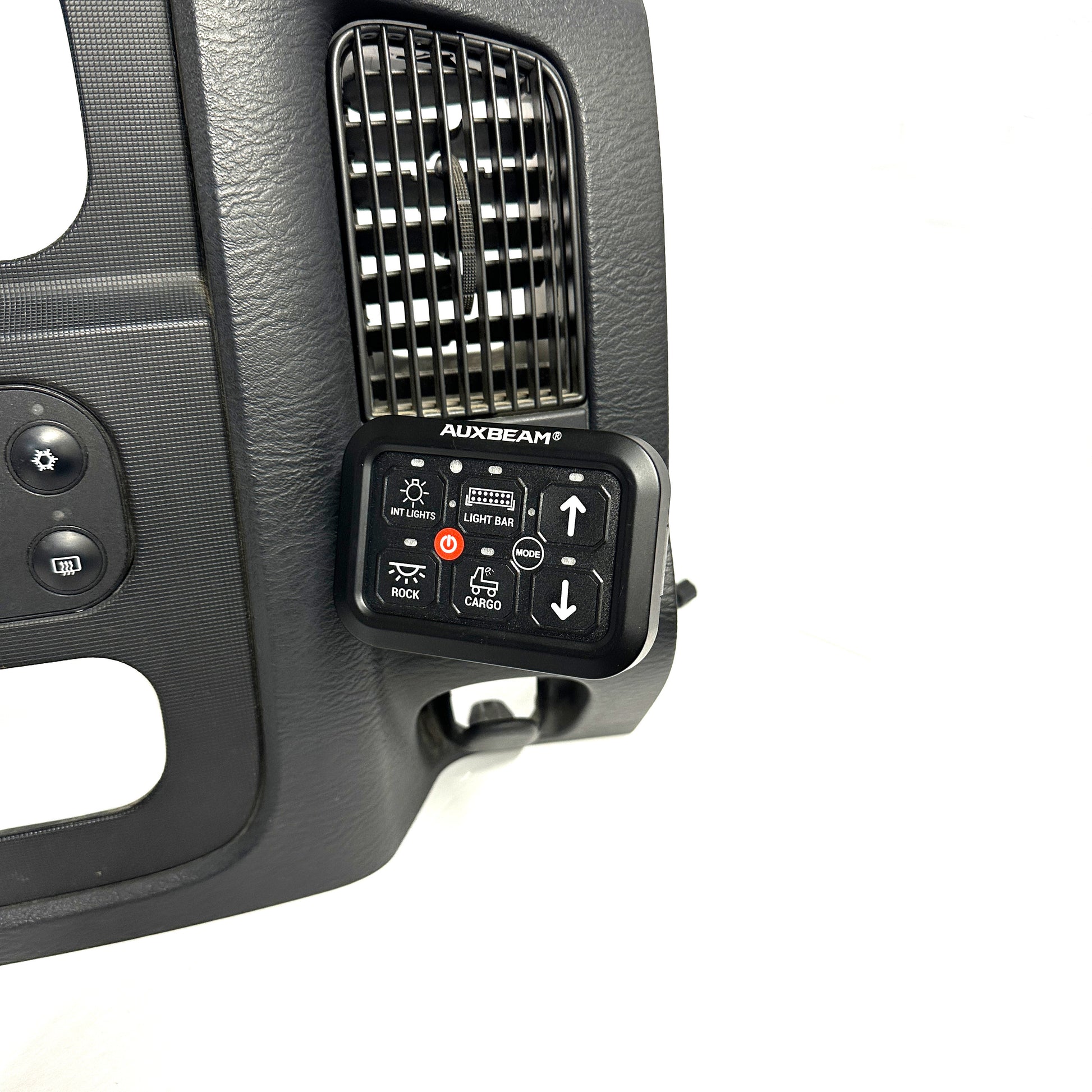 Mount your 8 gang or 6 gang Auxbeam switch panel with this custom mounting backet designed specifically for your Ram in the lower blank bezel cover